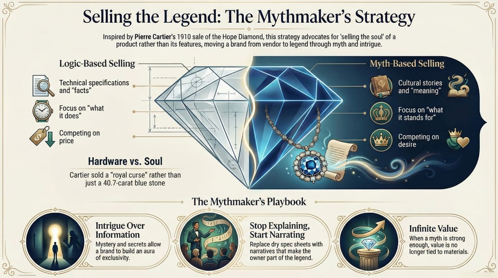 This is the ultimate luxury strategy: Myth creates value. When a story is powerful enough, logic takes a back seat. A Sigma strategist knows that intrigue sells better than a list of features. We don’t just provide “info”; we manufacture mystery.