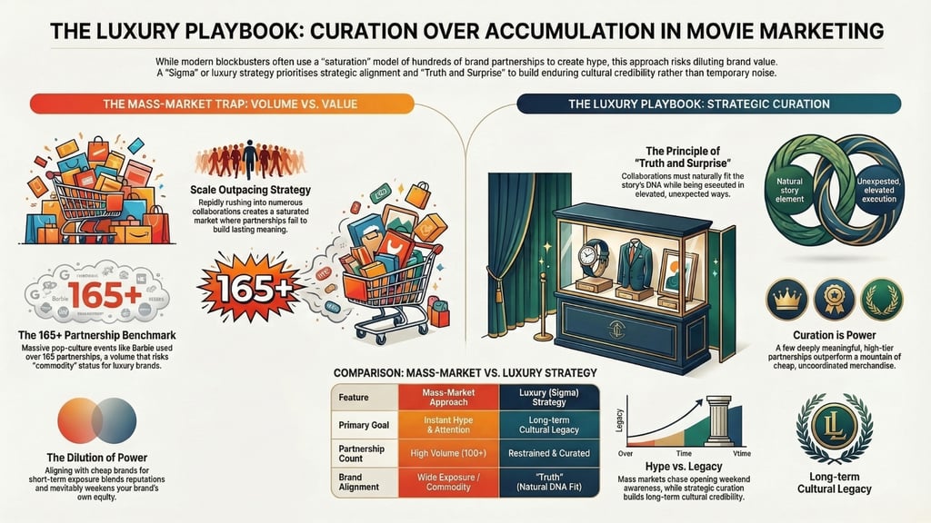 Ayssar: They did, and it worked for a massive pop culture event. But for a luxury brand, that level of volume is a trap. The article points out a critical flaw: scale has outpaced strategy. When a movie puts its logo on every fast-food cup and cheap t-shirt, it is acting like a commodity. It is screaming for attention.