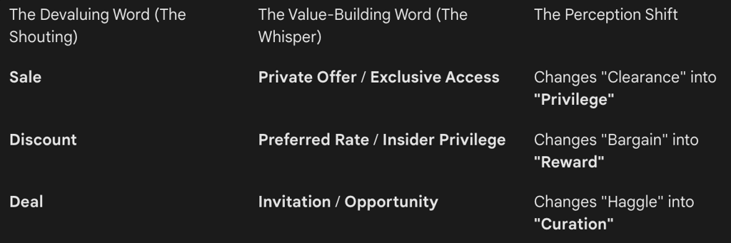 The words you use are the architecture of your prestige. They guard your value against the competition. When you remove the common, transactional noise, you reinforce the unshakeable truth: You are not for everyone, and that is precisely why you are worth everything.